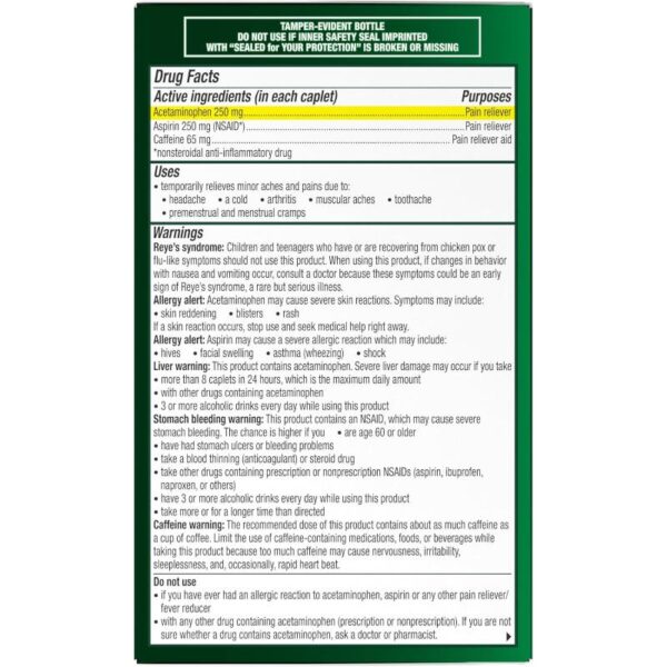 Excedrin Las cápsulas extra fuertes contienen dos analgésicos y una ayuda para aliviar el dolor para un efecto mejorado