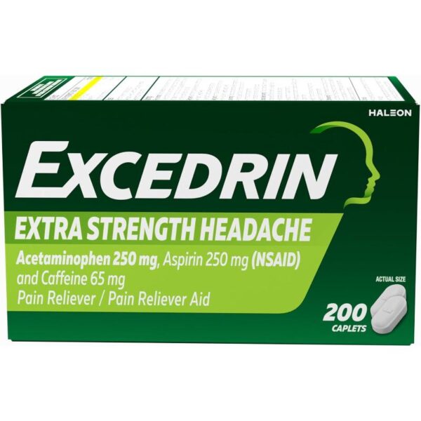 Una botella de 200 cápsulas Excedrin extra fuertes para aliviar el dolor