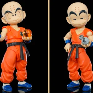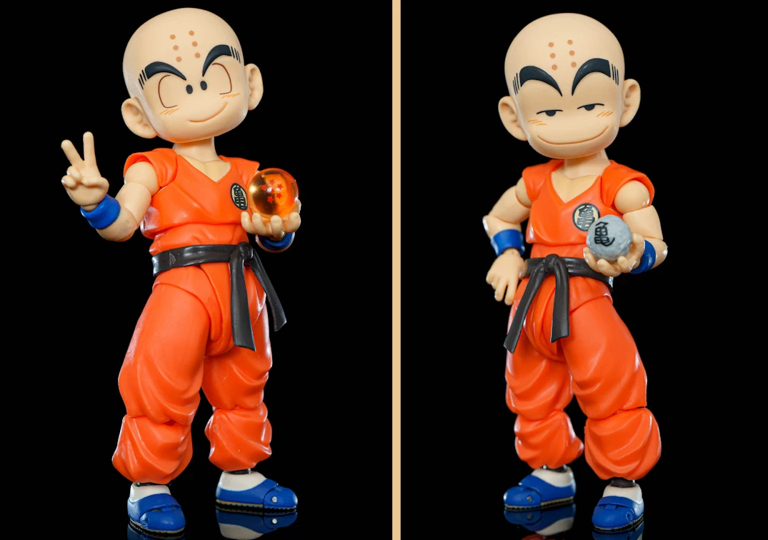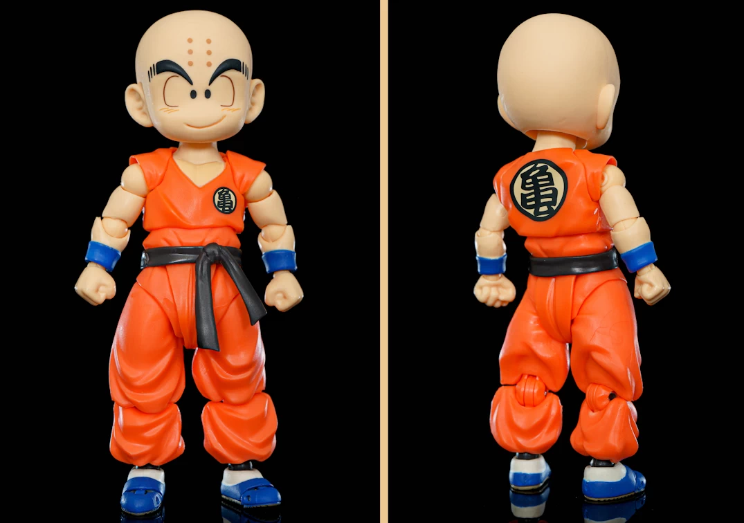 El pequeño Krillin de «Dragon Ball» se une a la alineación de S.H.Figuarts! Krillin viene con su traje de batalla naranja con el símbolo de Kame en la parte delantera y trasera que consiguió después de convertirse en estudiante del Maestro Roshi. Viene con tres expresiones, incluyendo una sonrisa normal, una sonrisa arrogante y una cara de grito para cuando está atacando. También viene con una parte de efecto Kamehameha, una roca Kame, una Dragon Ball de 6 estrellas y muchas manos opcionales.