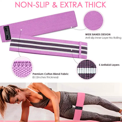 Estas bandas no se enrollarán ni deslizarán durante los entrenamientos, a diferencia de las bandas de resistencia de látex / goma. Están cosidas con un tejido elástico de algodón y poliéster superior y contienen látex de naturaleza elástica en el interior, lo que las hace más amigables con la piel, duraderas, estables y antideslizantes.