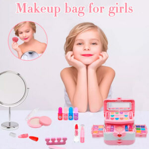 Bonita funda de maquillaje para niñas: pequeña pero con suficiente capacidad que permite a tu niña organizar y recoger juguetes de maquillaje. Cómodo de llevar, para que las niñas puedan jugar con sus queridos juguetes de maquillaje en cualquier lugar como viajar, vestir.
